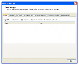 You must press “New”… (You will not need to do this if the New Account Wizard opened automatically).