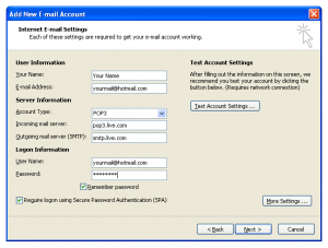 0 Response to “Configure Hotmail, Live and MSN e-mail accounts to use them with POP3 in Outlook 2007 and Outlook 2003”