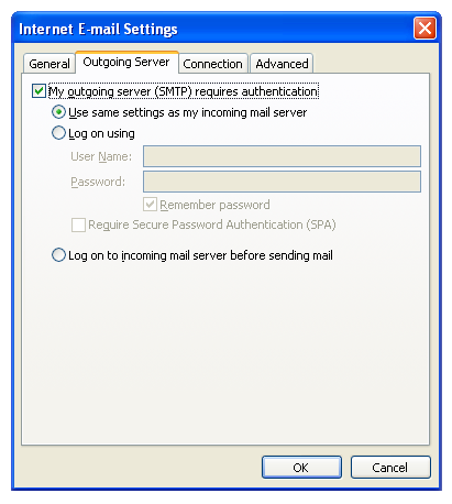 SMTP Authentication: Yes, use the same settings as the incoming mail server.