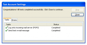 After that, press OK and then, the “Test Account Settings” button… If everything was correctly configured, you’ll get the following screen: [Outlook 2003: there are more items, but they must all be checked in green.]